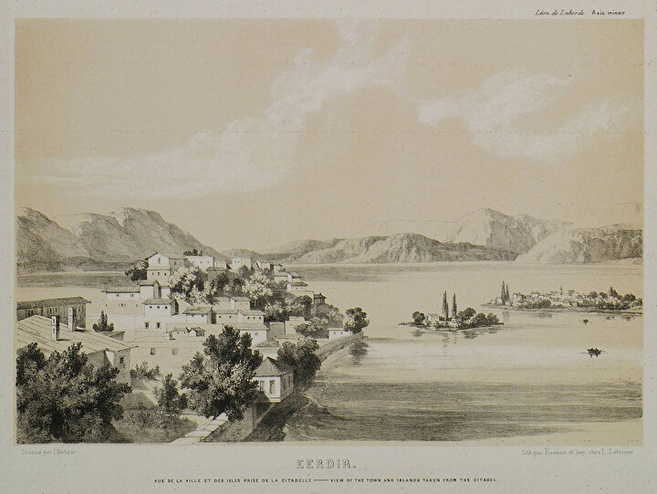 Eğirdir ilçesine, göl ve göl adacıklarına bakış.