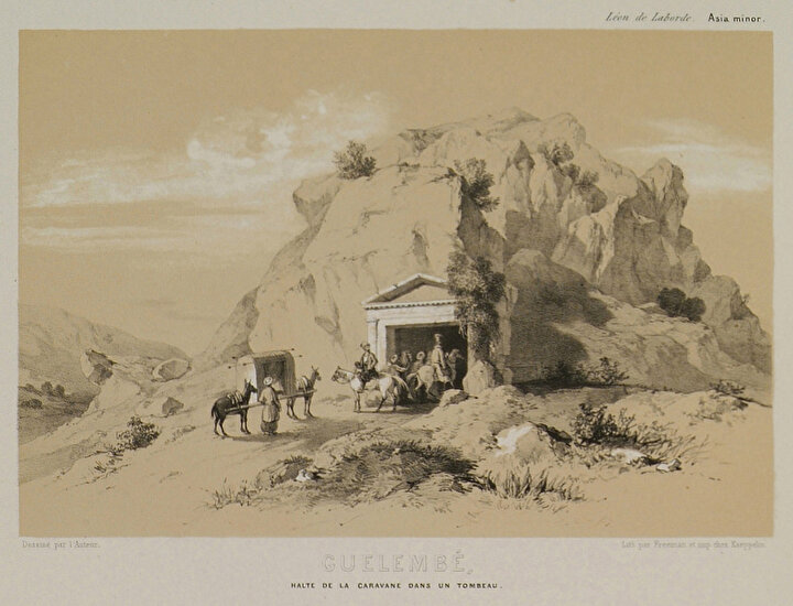Yolcuların karavanı, Küçük Asya'daki Gelenbe'de bir kaya mezarında durur.
