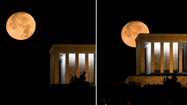 Ankara'da akşam saatlerinde gökyüzünde beliren dolunay, Anıtkabir ile güzel görüntülere sebep oldu.