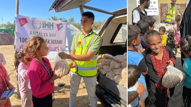 İnsan Hak ve Hürriyetleri İnsani Yardım Derneği (İHH) Antalya Şubesi tarafından Gazze'deki ihtiyaç sahiplerine 100 bin ekmek ulaştırıldı.