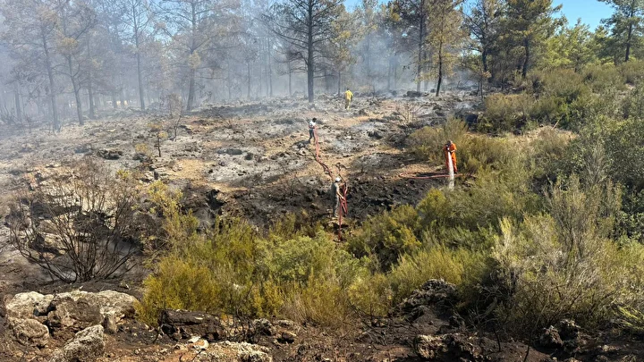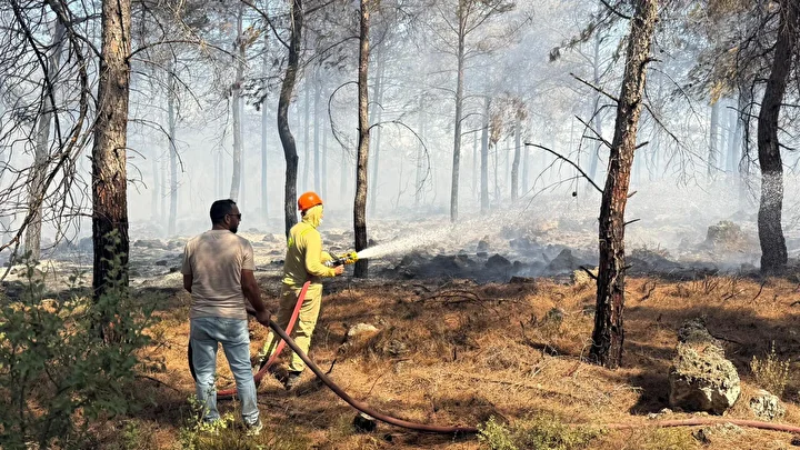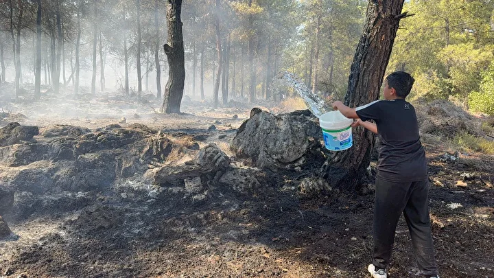 Bölgede soğutma çalışmaları devam ederken, sera atıklarının yakılması sırasında alevlerin ormana sıçraması sonucu yangının çıktığı öne sürüldü.