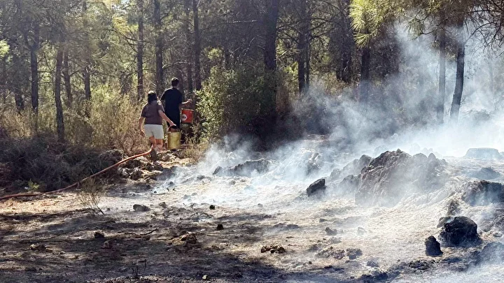 Yangın sırasında bölgede bulunan Nagihan Kızıl, “Biz komşularımızla oturuyorduk, çiçek fidanı yapıyorduk. Bir baktık duman çıkıyor, evimizin 100 metre aşağısında yangın başlamış. Koşup geldik, rüzgarla birlikte hızla yayıldı. Su çekip müdahale ettik, itfaiyeyi aradık. Eğer biri kundakladıysa, görsek biz de engellemeye çalışırdık. Burada insan var, hayvan var, evler var" diye konuştu.