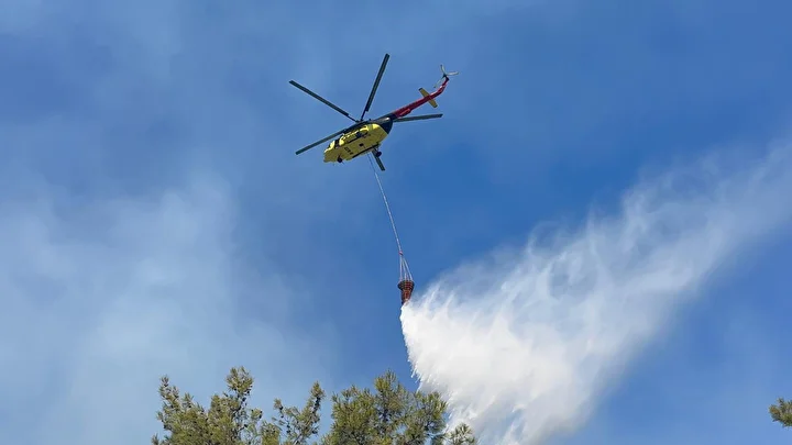 İhbar üzerine bölgeye çok sayıda itfaiye, orman ekibi ve polis sevk edildi. Çalışmalara 3 helikopter ve 2 yangın söndürme uçağı ile havadan destek verildi.