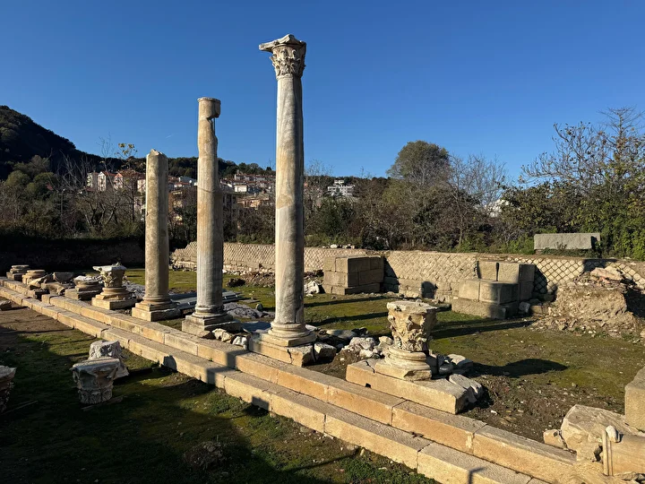 Prof. Dr. Fatma Bağdatlı Çam, Kum Mahallesi'nde okul inşaatı sırasında 2017'de tarihi kalıntılara rastlanmasının ardından koruma altına alınan bölgede 2022'den bu yana devam eden kazı çalışmalarında stoa yapısının ortaya çıktığını ve Roma dönemine ait yapıyı tamamen ayağa kaldırmak için restorasyon çalışmalarının sürdüğünü söyledi.