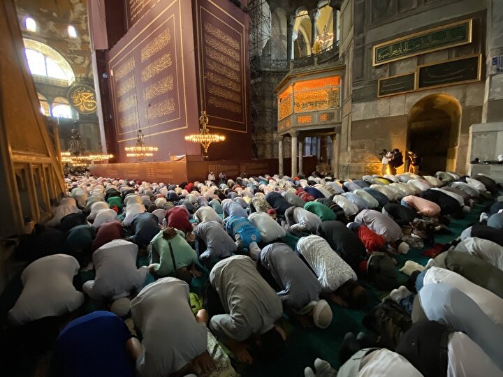Ayasofya Camii 86 yıl aradan sonra kılınan ilk cuma namazı ile ibadete açıldı. Cuma namazı esnasında dışarıda bekleyen binlerce Müslüman ikindi namazında camiyi doldurdu.