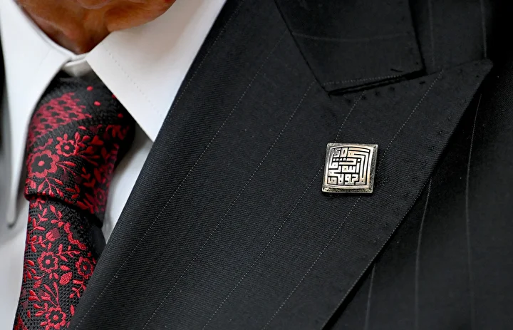 MHP Lideri Devlet Bahçeli'nin taktığı rozette ise, kare bir form içinde “Lâ havle ve lâ kuvvete illâ billahi’l-aliyyi’l-azim” (Güç ve kuvvet ancak yüce ve büyük olan Allah’a aittir.) ifadesi kufi sanatı kullanılarak dizayn edilerek, çevresi rumi motiflerle süslenmiş olduğu görüldü.