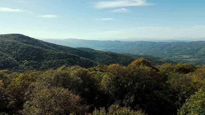 Çanakkale’nin Biga ilçesinde ormanlar sonbahar renklerine bürünürken, bu güzel manzara havadan görüntülendi.