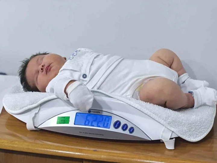 Kadın Doğum Uzmanı Dr. İbrahim Yaşa, "Bebek Bircan tarafımdan takip edildi. Birkaç gün önce de doğumu gerçekleşti. Sıkıntılı bir takip vardı. Bebek çok hızlı kilo alıyordu. 6 kilo 150 gram ağırlığında erkek bebek doğurttuk. 2024-2025 taramalarında Türkiye’deki en büyük bebek. Geçen sene İspanya’daki 6 kiloluk bebek Avrupa’da gündem olmuştu. Bundan birkaç ay önce doğuda bir ilimizde 5 kilo 250 gram doğan bir bebekle baya sansasyonel olmuştu. Bizim bebeğimiz aynı zamanda 37 haftalık bir bebekti. Literatüre girmeye aday bir bebek. Annemizi bir iki gün hastaneye yatırdık fakat ağrılar artmaya başlayınca normal doğum süresinden 3 hafta önce de olsa sezeryanla almaya karar verdik" ifadelerini kullandı.