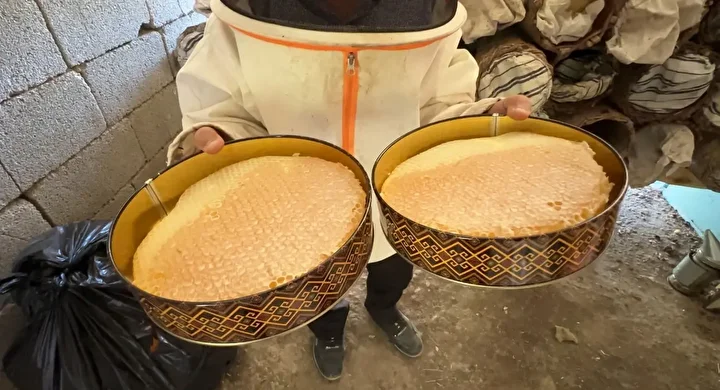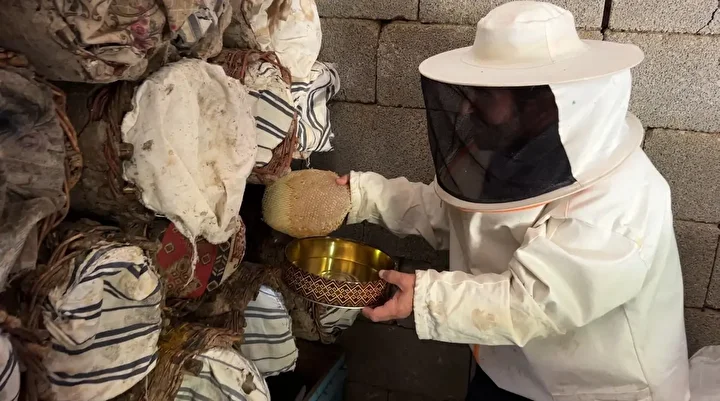 Hakkari’nin zorlu ve yüksek rakımlı coğrafyası arıcılık yapan çiftçiler, 6 aylık çalışmanın ardından geleneksel "sepet kovan" balının hasadına başladı.