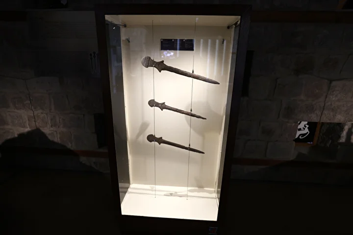 UNESCO Dünya Mirası Listesi'nde yer alan ve Anadolu'da kurulan ilk şehir devleti olan Malatya'daki Arslantepe Höyüğü'nde 1976'daki kazılarda çıkarılan yaklaşık 5 bin 500 yıllık kılıçlar tarihe ışık tutuyor. Dünyanın bulunan en eski kılıçları olduğu belirtilen 9 kılıç, o dönemdeki askeri sistem hakkında bilgi veriyor.