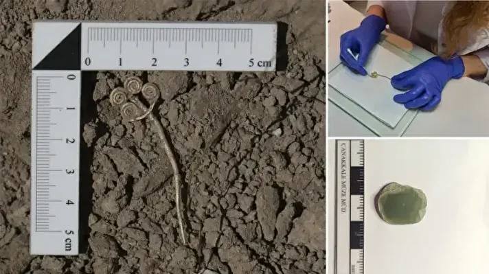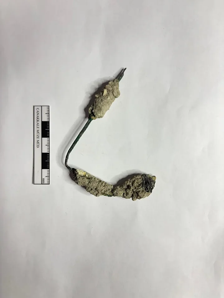 Kültür ve Turizm Bakanlığının “Geleceğe Miras” projesi kapsamında sürdürülen çalışmalarda, Troya uygarlığının Erken Tunç Çağı’na (M.Ö. 2.500) ait altın bir halkalı broş gün yüzüne çıkarıldı.