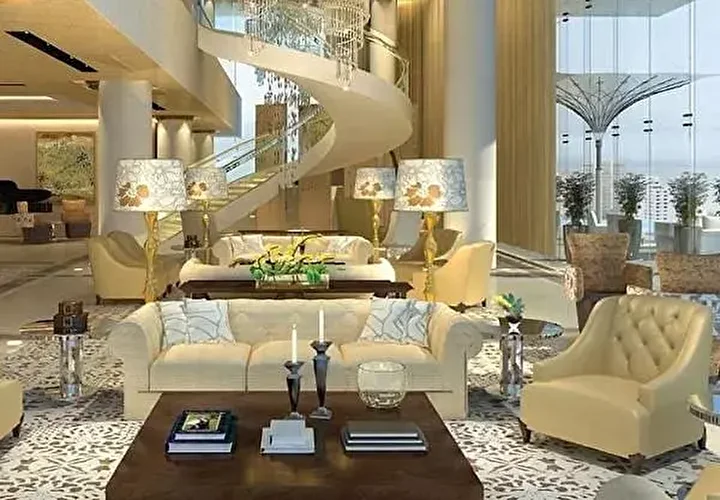 400 bin metrekarelik alana yayılan yapı; bir tapınak, 50 kişilik sinema salonu, spa, yüzme havuzu ve dokuz yüksek hızlı asansör gibi lüks detaylara sahip.