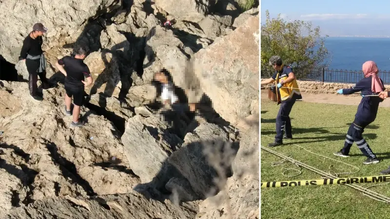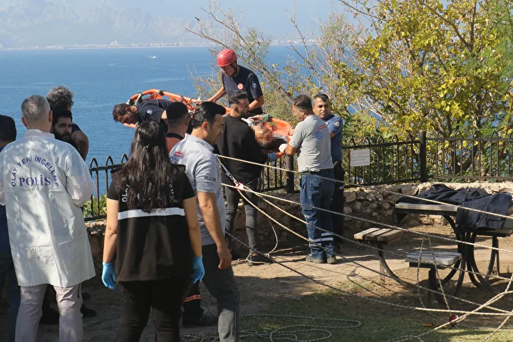 Antalya'da 30 metrelik falezlerde Sami Kırkuşu'nun (44) cesedi bulundu. Oltayla balık tutmak için falezlerden inenler tarafından kayalıkta fark edilen Kırkuşu'nun cansız bedenini ekipler, sedyeye bağlayıp yukarı çekti.