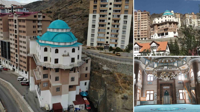 Gümüşhane'de olumsuz arazi şartları nedeniyle kayalık alanda inşa edilen ve çevre sakinleri tarafından “6 katlı cami” olarak isimlendirilen caminin inşaatında sona gelinirken, cami ilginç mimarisi ile görenleri hayrete düşürüyor.