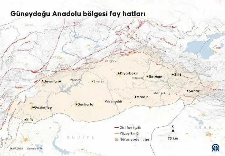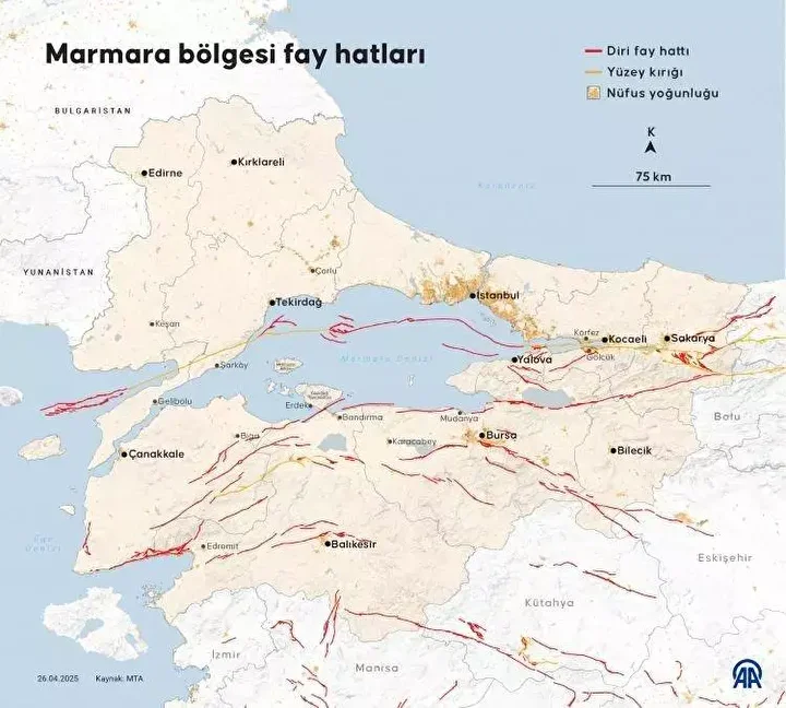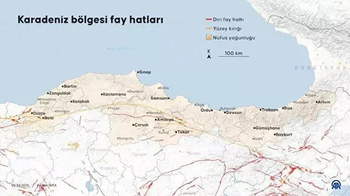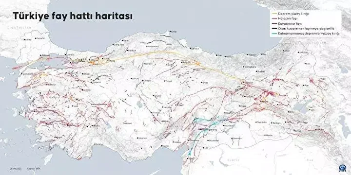 Maden Tetkik Arama Genel Müdürlüğü (MTA) diri fay hatları haritasını güncelleyerek kamuoyuyla paylaştı. Türkiye diri fay haritası risk altındaki 45 il ve 110 ilçeyi işaret ediyor.