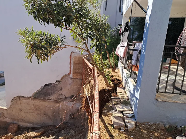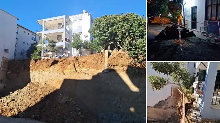 Antalya'nın Serik ilçesinde inşaat kazı çalışmasında meydana gelen toprak kaymasının oluşturduğu risk nedeniyle bitişikteki 2 katlı bina tahliye edildi.