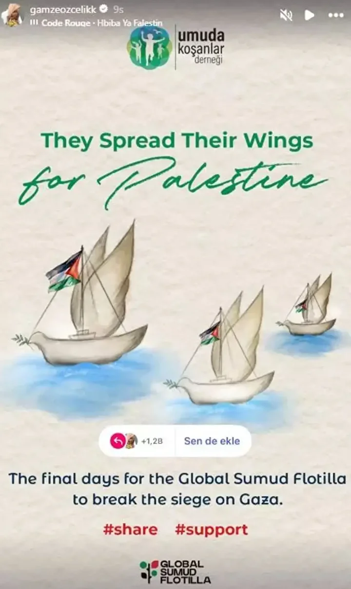 İsrail donanma unsurlarının yasa dışı şekilde ele geçirdiği Küresel Sumud Filosu'na ait gemiler ve aktivistler dünya gündemine otururken Türkiye'de de sanat dünyasından bazı isimler bu barbarlığa tepkisiz kalmadı.