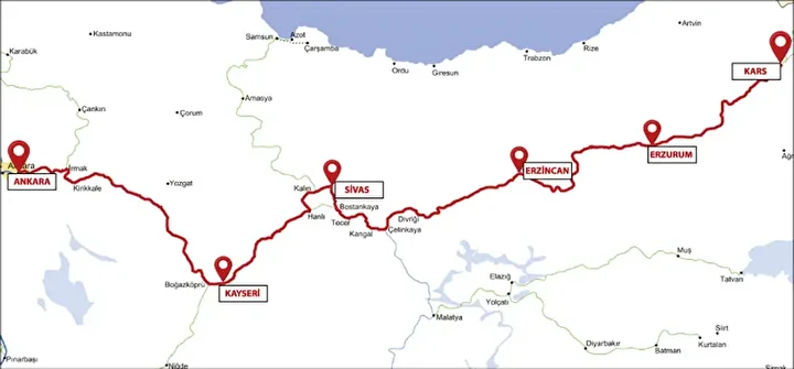 “Ankara–Kars yönünde Erzincan’da 2 saat 30 dakika, Erzurum’da 4 saat, dönüşte ise İliç’te 3 saat, Divriği’de 2 saat 30 dakika ve Sivas’ta 3 saat duruş yapılacak. Bin 360 kilometrelik güzergâhta duruşlar dahil toplam 32 saat süren yolculukta, karla kaplı dağlar, vadiler ve tarihi yapılar kartpostal tadında manzaralar sunacak.”