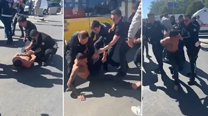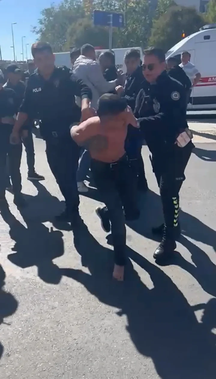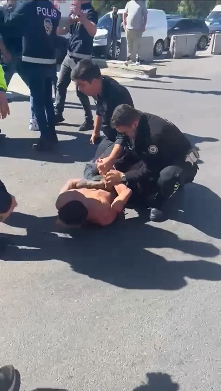 Alkollü olduğunun anlaşılması üzerine saldırgan tavırlar sergileyen ve polise direnerek çevresine zarar vermeye başlayan M.K., gözaltına alındı. Yaşananlar çevredekiler tarafından cep telefonu ile kaydedildi.