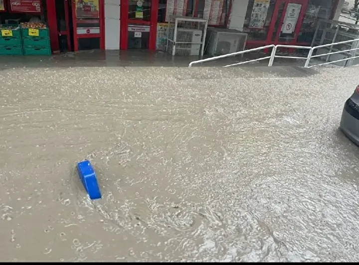 Zemin katlardaki bazı ev ve iş yerlerini su basarken, araç sürücüleri ilerlemekte güçlük çekti.