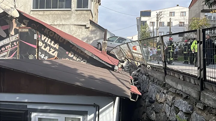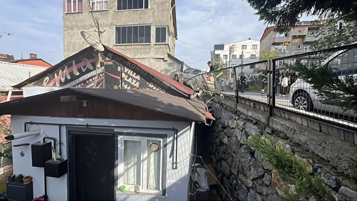 Kocaeli’nin Gebze ilçesinde, park halindeki hafif ticari araca çarpıp savrulan otomobil, yol seviyesinin altında kalan tek katlı evin çatısına çıktı. Kazada yaralanan olmazken, tedbiren eve girişler yasaklandı.