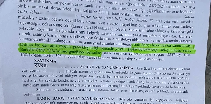 Samsun’da yaşayan Y.B. ve D.A., 2021 yılında Antalya’da ikamet eden B.A. ile internet üzerinden araç alım satımı için anlaştı.