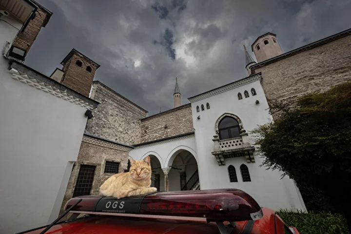 Sarayın sessiz tanıkları arasında yer alan kediler, yüzyıllar önce olduğu gibi bugün de Harem'in taş zeminlerinde dolaşıyor, küçük kapıdan geçerek sarayın farklı köşelerine gidiyor.