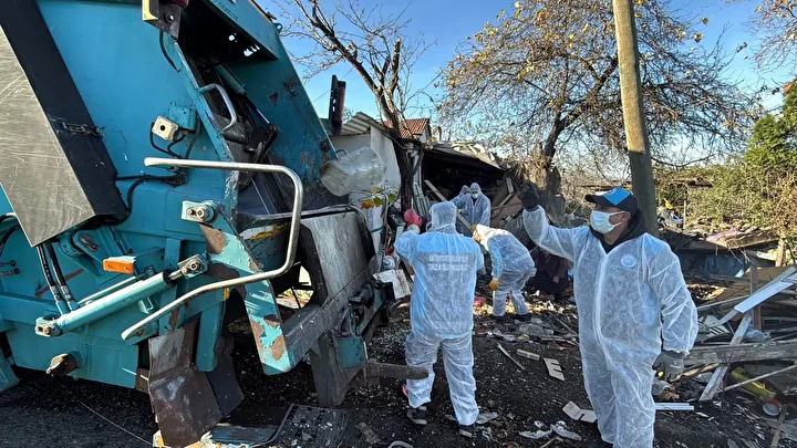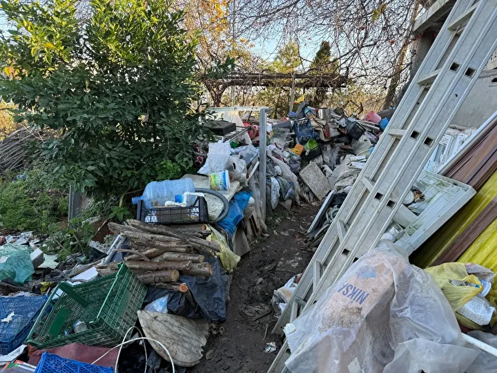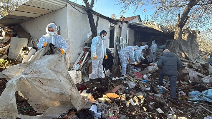 Yapılan incelemelerde evlerin içinde ve dışında büyük miktarlarda çöp ve atık malzemelerin depolandığı tespit edildi. Tonlarca çöp ve atık madde, iş makineleriyle çöp kamyonlarına yüklenerek bertaraf edilirken, evler ve çevresi, ilaçlama çalışmalarıyla dezenfekte edildi.