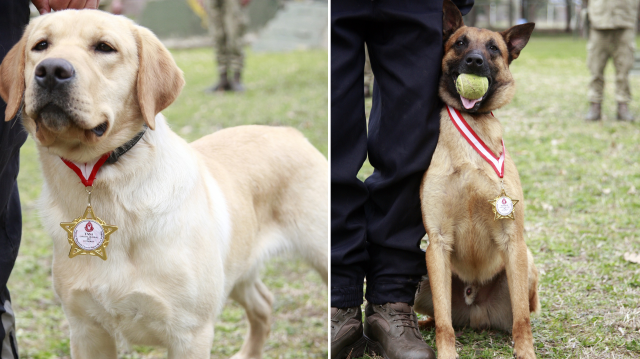 En küçüğü 11 aylık, en büyüğü 2 yaşında olan Labrador Retriever ile Belçika Malinois cinsi 4 arama ve 1 ceset arama köpeği, 3 haftalık çalışmanın ardından timleri ile birlikte birliğine döndü. ‘Yasa’, ‘Masum’, ‘Devil’, ‘Alel’ ve ‘Teno’ isimli köpeklere, ilk görevlerini başarıyla tamamladıkları için Tabur Komutanlığı’nda düzenlenen törenle madalyaları verildi.