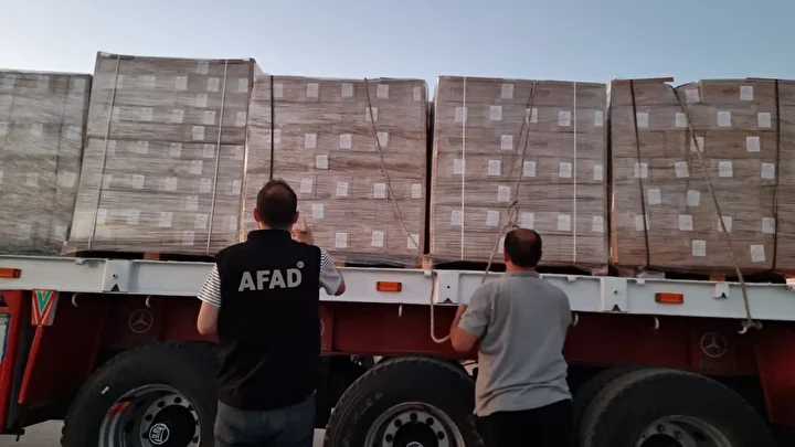 Tırları limandan Afet ve Acil Durum Yönetimi Başkanlığı (AFAD) yetkilileri uğurladı.