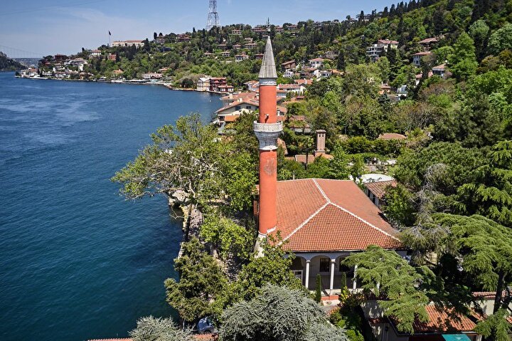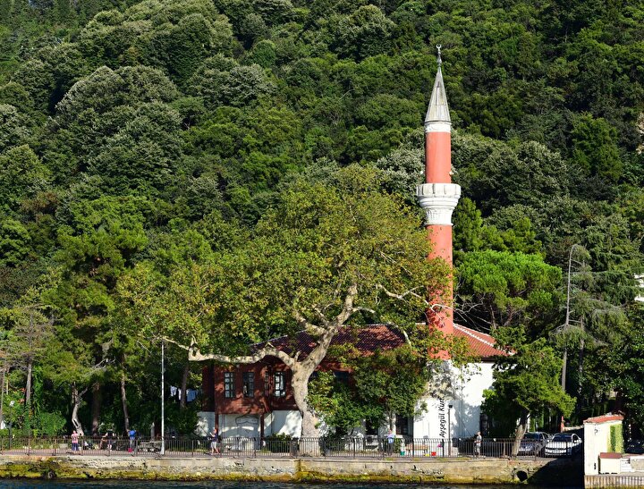 Deniz tarafından bir duvar çeşmesi bulunan caminin koru tarafı yüksek sütunlarla sundurma şeklinde inşa edilmiş.