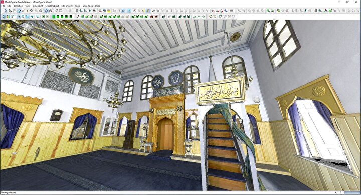 Büyük zarar gören caminin, bir yapı ve restorasyon firması tarafından birebir ölçülerle hazırlanan 3 boyutlu modeli ortaya çıktı.