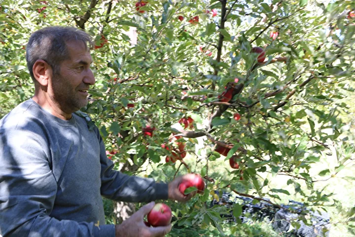 Yüksekova’ya 40 kilometre uzaklıktaki Esendere beldesinin Güvenlik Mahallesi Küme Evleri'nde yaşayan Ensar Fırtına’nın 200 dönümün üzerinde 2 binden fazla elma ağacının yer aldığı bahçesinde kiraz, kayısı, armut ve ceviz gibi farklı meyve türleri de bulunuyor. Fırtına, hasat edilen elmaların büyük bölümünü soğuk hava deposunda muhafaza ettiklerini, talep doğrultusunda ise Türkiye'nin dört bir yanına gönderdiklerini söyledi.