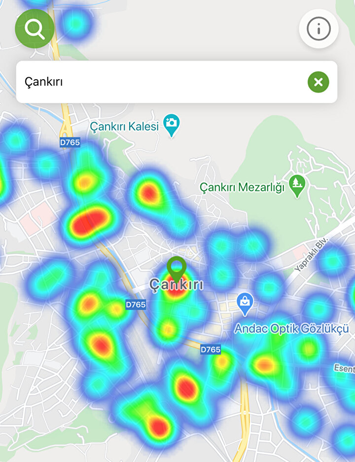 Çankırı'nın koronavirüs yoğunluk haritası.