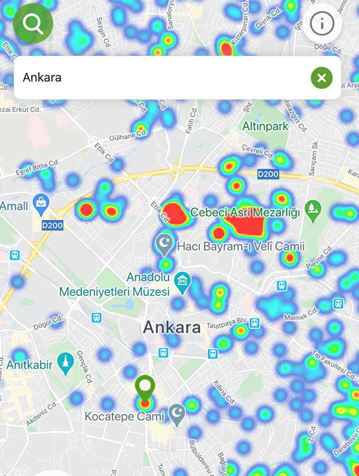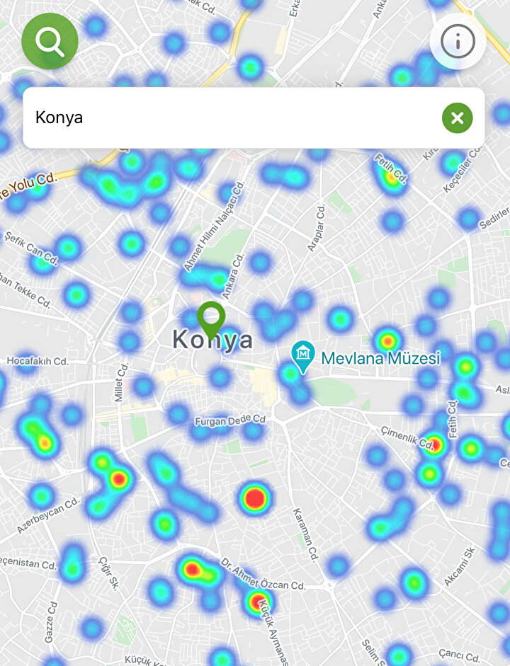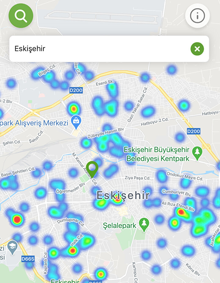 Eskişehir'in koronavirüs yoğunluk haritası.