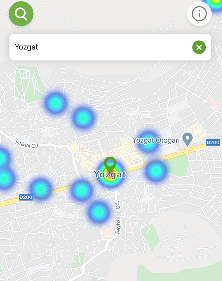 Yozgat'ın koronavirüs yoğunluk haritası.
