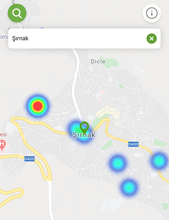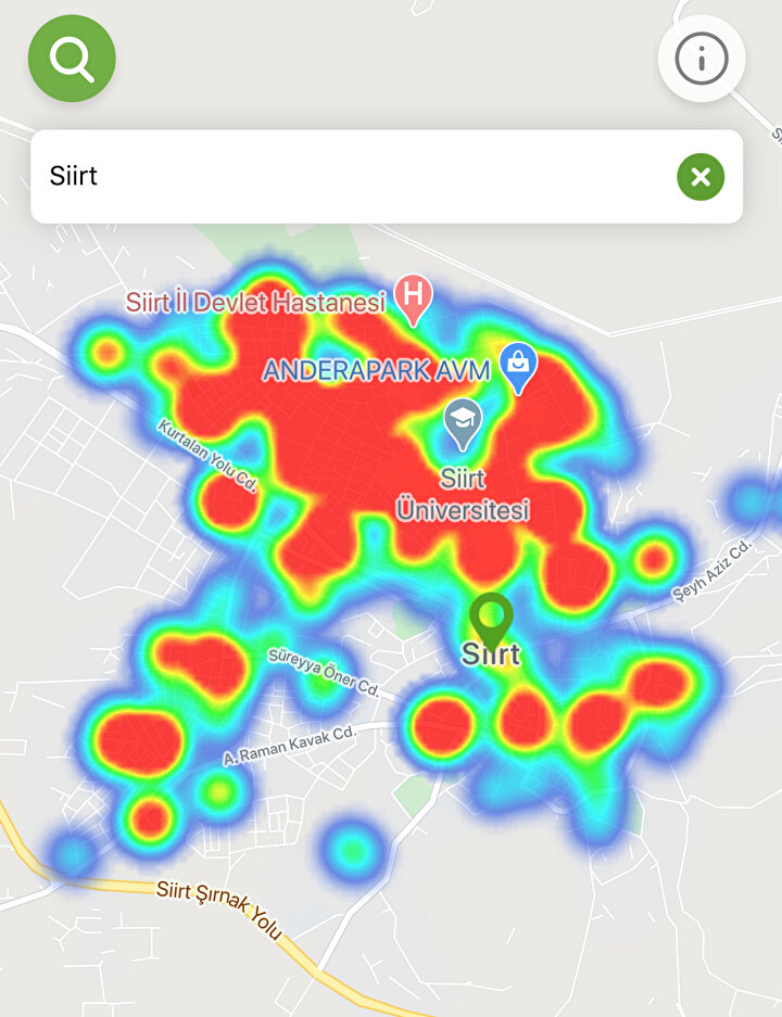Şırnak'ın koronavirüs yoğunluk haritası.