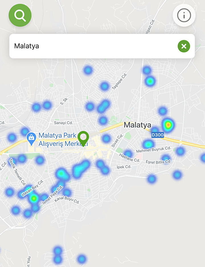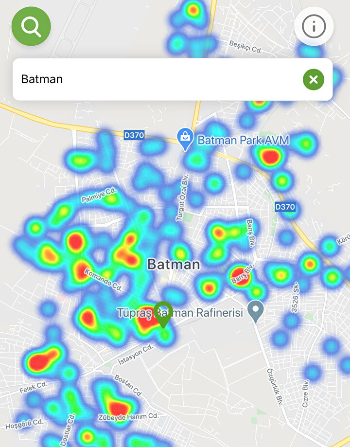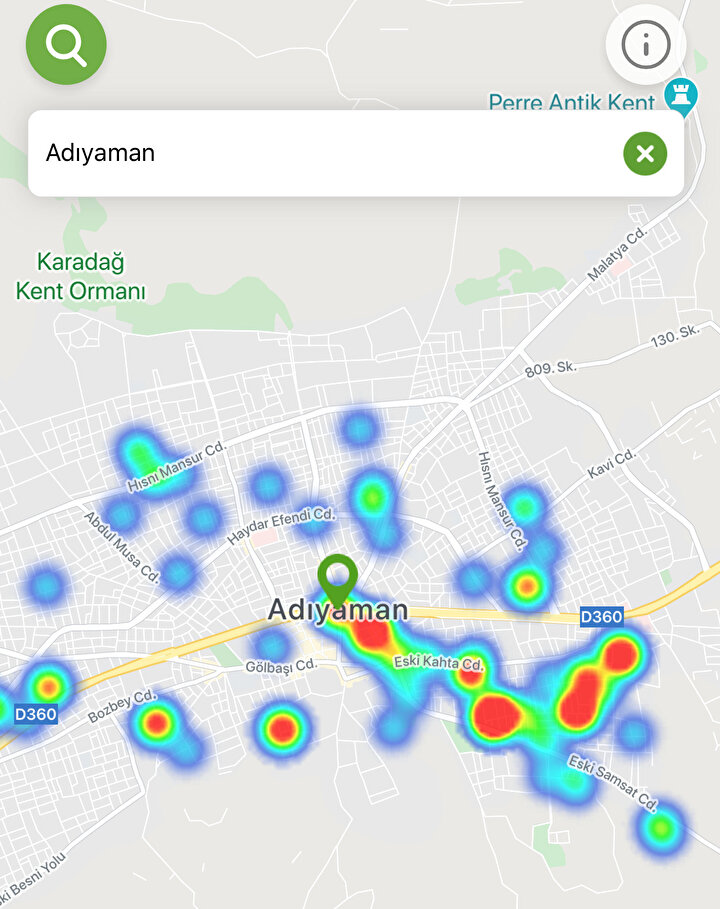 Adıyaman'ın koronavirüs yoğunluk haritası.