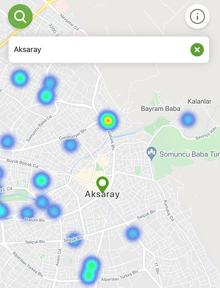 Aksaray'ın koronavirüs yoğunluk haritası.