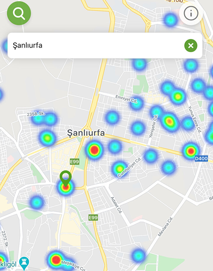 Şanlıurfa'nın koronavirüs yoğunluk haritası.