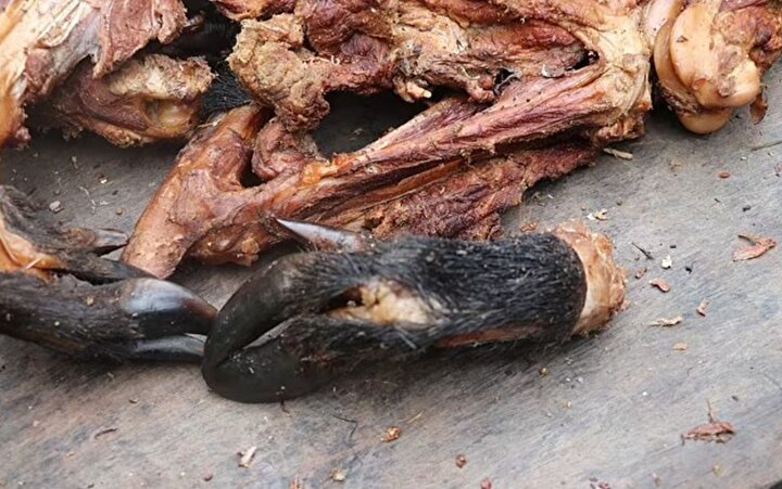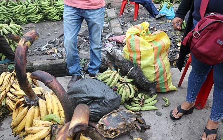 Şoke edici fotoğraflar, iç organları kesilmiş, pençeleri kopmuş, derileri asılı ve çeşitli memelilerin etlerinin üst üste yığılmış halde kurutulmuş maymunlar olduğunu gösteriyor. Bazı hayvanlar ise egzotik evcil hayvan pazarında satılmak üzere küçük metal kafeslere tıkıştırılarak, korkunç koşullarda tutuluyor.