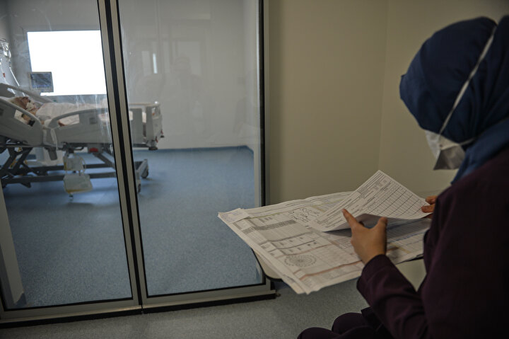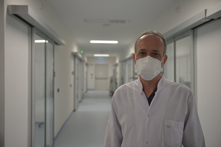 “Yoğun bakım hasta odalarına iki kapıdan geçilerek girilebiliyor. Negatif basınçlı odalar sayesinde içerideki virüslü havanın sirkülasyonu diğer alanlara geçmiyor. Filtrelerde tamamen temizlenip temiz hava olarak dışarıya atılıyor.