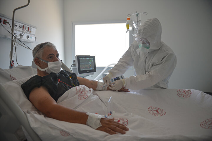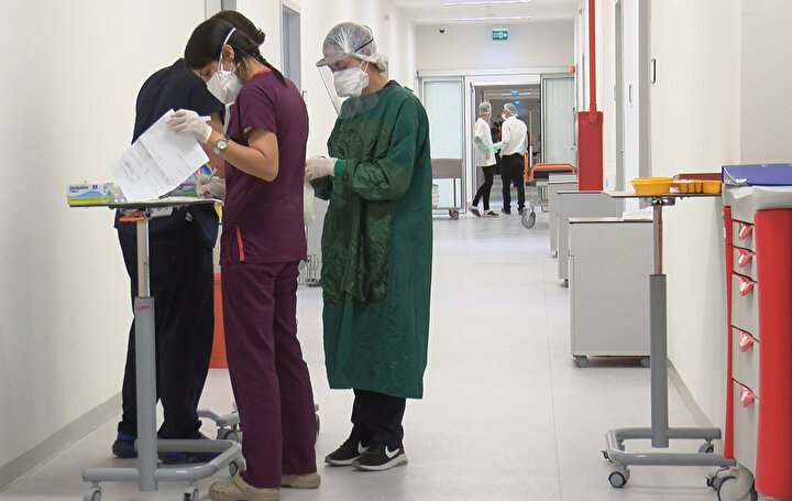 “İlhan Varank Eğitim Araştırma Hastanesi’nde yoğun bakımda bölümlemeler yapmıştık. İzole odalar oluşturup pozitif basınçlı normal odaları negatif basınca çevirmiştik. Yani normal anestezi veya yoğun bakım odalarını koronaya ve salgına uyumlu hale getirmiştik. Ama buradaki odalar en baştan o şekilde dizayn edildi. Bunlar her şeyden önce personelimizi korumak için önemli. Hastalığın yayılmasını da engellemek adına da faydalı. Sağlık personelimiz sadece hasta odalarına girerken ekstra koruyucu ekipmanlarını giyiyor.