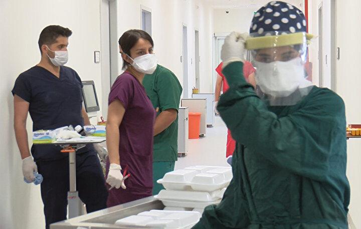 Eldiven, galoş, bone, sadece yüzü açıkta bırakan tulum, maskeler ve gözlük ile koruyucu siper giyerek hastanın yanına giriyoruz. Özellikle aerosol oluşturan işlemler dediğimiz, hastaya ağız burundan yapılan girişimler, entübasyon gibi işlemler, ortama damlacık yayabilecek riskli durumlar söz konusu. Hasta odasından ilk kapıdan ara bölgeye çıkar çıkmaz da enfekte kıyafetler çıkarılıp tıbbi atık olarak çöpe atılıyor. O kıyafetlerle bu koridorlara çıktıkları anda risk oluşturabilirler. Yoğun bakım uzmanları, sağlık personellerimiz, acilde çalışan arkadaşlarımız, en ön saflarda mücadele veriyor. Onların sağlığı bizim için çok önemli.”