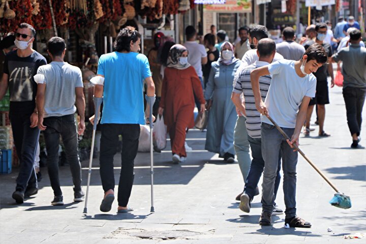 Hafta sonu olması ve sıcaklık nedeniyle kent genelinde bir hareketlilik gözlenmezken, Sur ilçesi Gazi Caddesi üzerinde vatandaşların çoğunun maske ve sosyal mesafe kuralına dikkat etmediği görüldü.