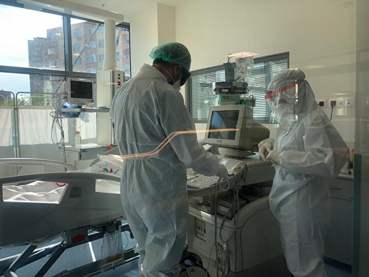 Hastanenin yoğun bakım ünitesinde 81 yatak bulunuyor. 2 bölümden oluşan yoğun bakımın 48 yataklı birinci bölümünde yatan hastaların tamamı, koronavirüs tedavisi görüyor. Alışılagelmiş yoğun bakım ünitelerinden farklı olarak hastalar, ayrı ayrı ve cam kapıları olan odalarda yatıyor. Doktorlar, tedavi uygulayacakları her bir hastanın odasına girmeden önce, kapı önünde koruyucu ekipmanlarını büyük bir titizlikle giyiniyor.