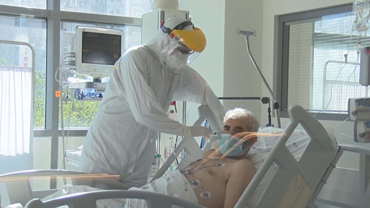 Yoğun bakımda koronavirüs tedavisi süren ve sağlık durumu iyiye giden bir hasta kameralara el sallayarak, doktoru Namigar Turgut ve tedavisine destek olan yoğun bakım görevlileri ile birlikte alkış tuttu.