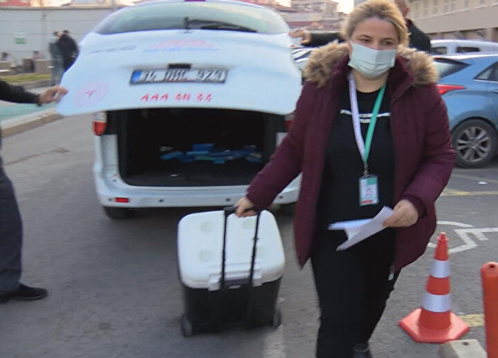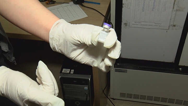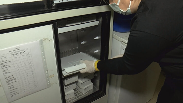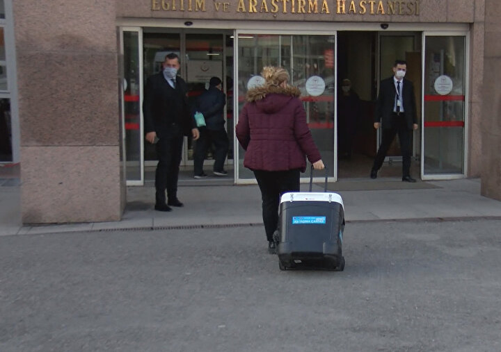 Hızla kullanılması gereken durumlarda aşı, oda sıcaklığında yarım saat içinde çözünebiliyor. Çözünen aşının 6 saat içinde uygulanmış olması gerekiyor. Biontech aşılarının Halk Sağlığı Laboratuvarlarından aşı polikliniğinde uygulanmasına kadar yolculuğu, gazeteciler tarafından görüntülendi.