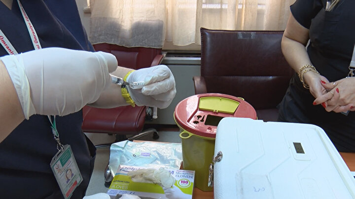 Barkodu flakon üzerine yapıştırıyoruz, kalan 6 dozu da bu barkoda işleyerek hangi kişiye işlendi ise onun TC bilgisini tanımladıktan sonra kayıtlarımıza geçiriyoruz. Aşıdan sonra vatandaşlarımızı bir süre burada tuttuktan sonra bir sorun çıkmadığı taktirde gönderiyoruz" dedi.