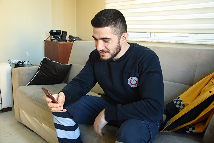 "Kütahya 112 acil serviste ambulansta çalışıyorum. Koronavirüsten dolayı evimize gidemiyoruz. Bu tür vakaları gittiğimizden dolayı ne ile karşılaşacağımızı bilmediğimiz için ailemizi tehlikeye sokmamak için bu süreçte onlardan ayrı kalıyoruz. Sizleri ve ailemizi korumak için biz kendimizi izole ediyoruz. Yalnız yaşıyoruz. Siz evde kalın sağlıklı kalın. 45 günlük bebeğimiz var. Anca nöbet çıkışlarında, normal günlerde telefonla görüntülü olarak, camdan kapıdan sosyal mesafeyi koruyarak birbirimizi izleyip konuşup hasret gideriyoruz. Hepsi onların sağlığı için.”